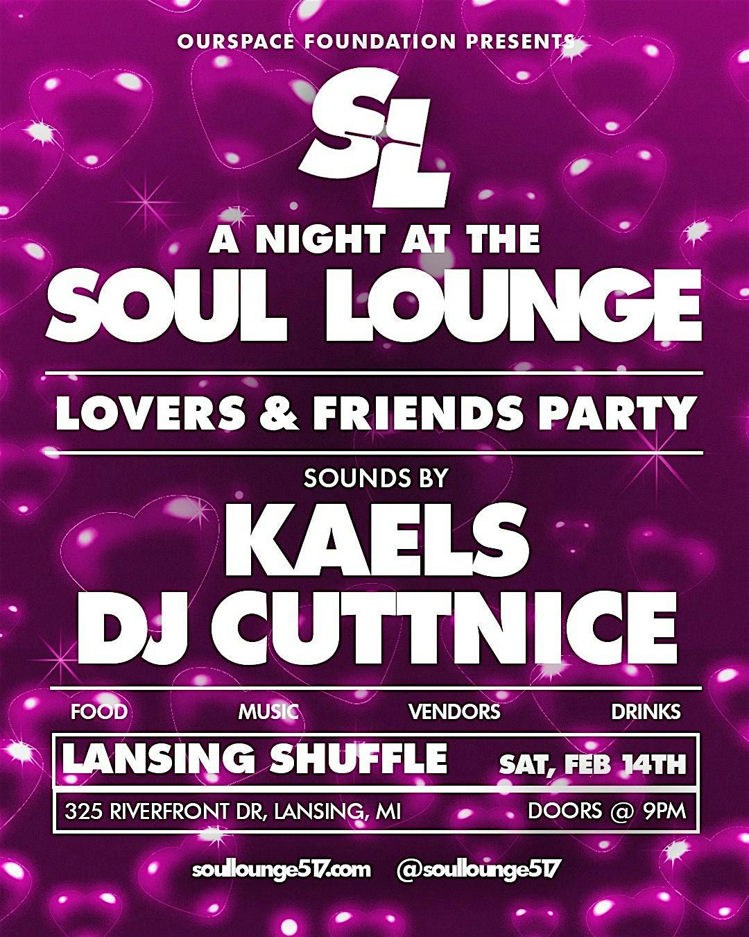 Join us for a special Valentine’s Day edition of A Night at the Soul Lounge, themed Lovers & Friends, on Friday, February 14 from 9PM–2AM at Lansing Shuffle.