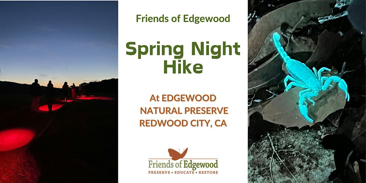 Come explore Edgewood Park & Natural Preserve with Friends of Edgewood docents after dark. This special night hike will start from the Bill and Jean Lane Education Center at Edgewood Park and Natural Preserve. What nocturnal creatures might we see? Spiders? Bats? Scorpions? Mice? Owls? Come learn about how these species play an important role in the biodiversity of Edgewood.