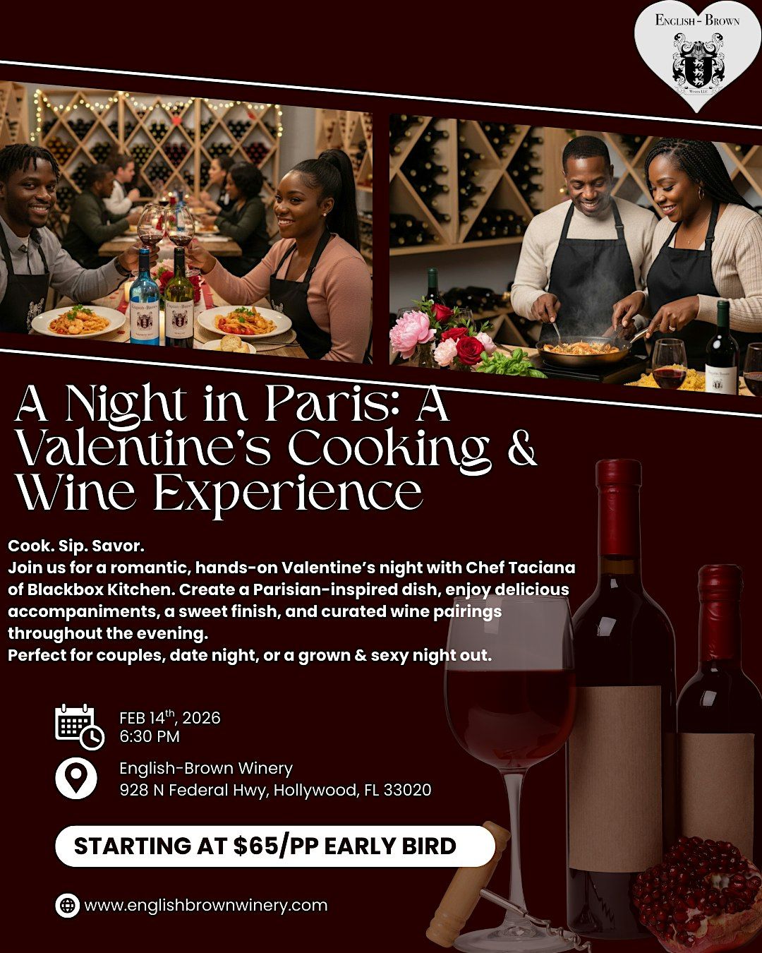 Fall in love with French flavors curated by Blackbox Kitchen, and perfectly paired wines from English Brown Winery.