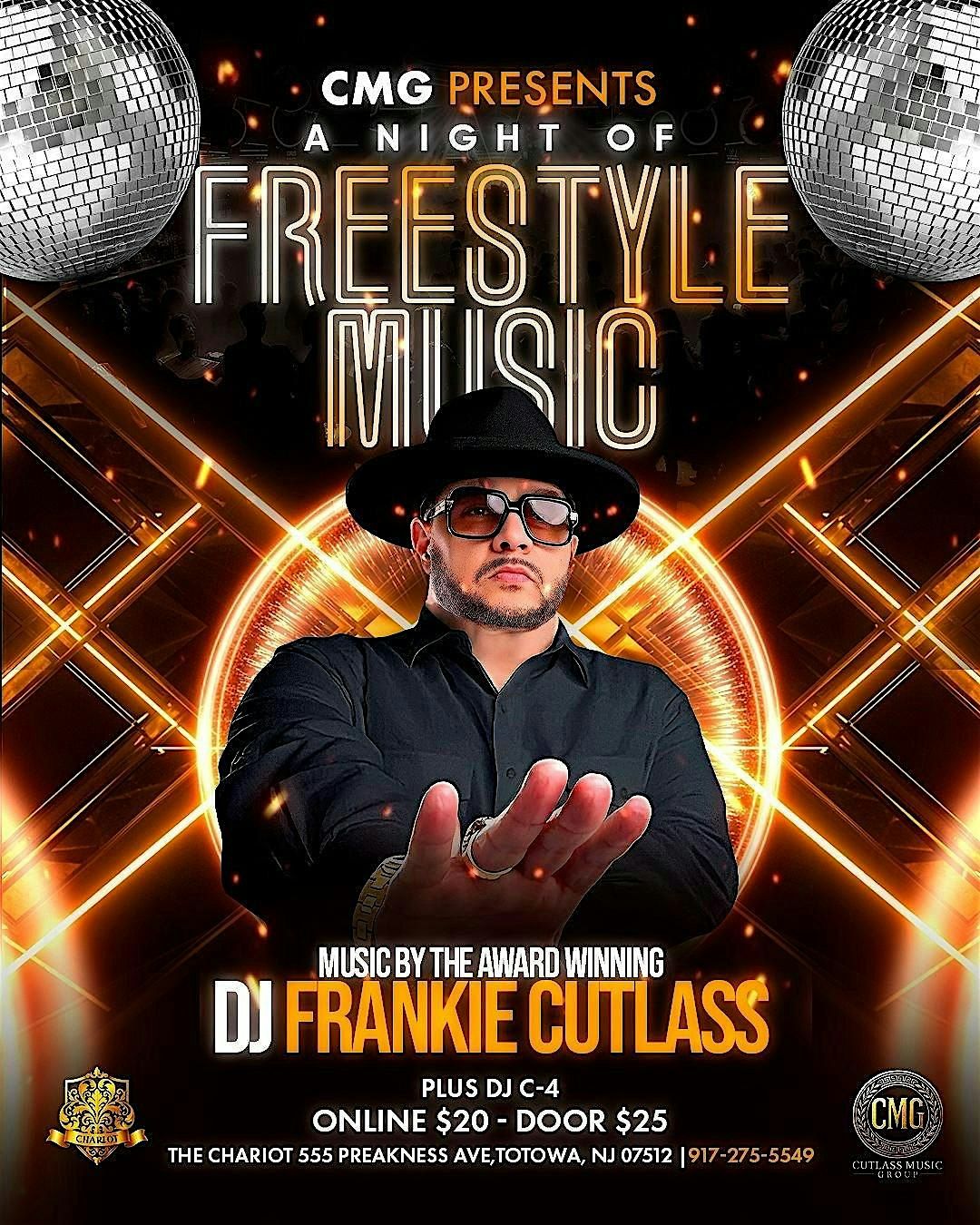 CMG Presents, A Night Of Freestyle Music, in Totowa, NJ, with the award winning DJ Frankie Cutlass. Plus an opening set by DJ C-4.