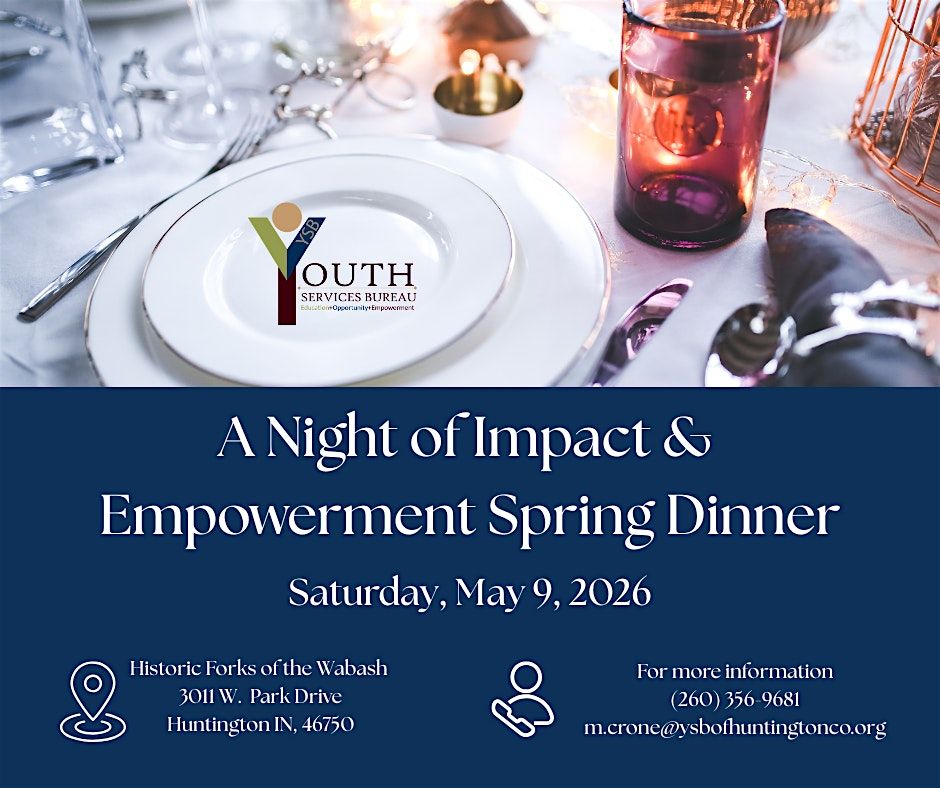 You don’t want to miss the new updates from the Youth Services Bureau of Huntington County at our A Night of Impact and Empowerment Spring Dinner. This special evening will highlight the progress being made in our community, the lives being impacted through YSB programs, and the vision for what’s ahead. Guests will also have the opportunity to hear from our featured speaker, Indiana State Representative Lori Gross-Reaves, who also serves as a Professor of Social Work at Indiana Wesleyan University. She will share insight and encouragement as we continue working together to strengthen and empower our community. It promises to be an inspiring night focused on connection, impact, and empowerment.