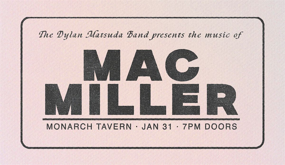 Come join us for our third live band tribute night dedicated to the legendary hip-hop rapper/producer Mac Miller at Monarch Tavern! Featuring arrangements for a 9-piece band, this night will highlight his greatest hits reimagined with some of Toronto's brightest musicians, celebrating his incredible contributions to hip-hop/R&B across his discography.