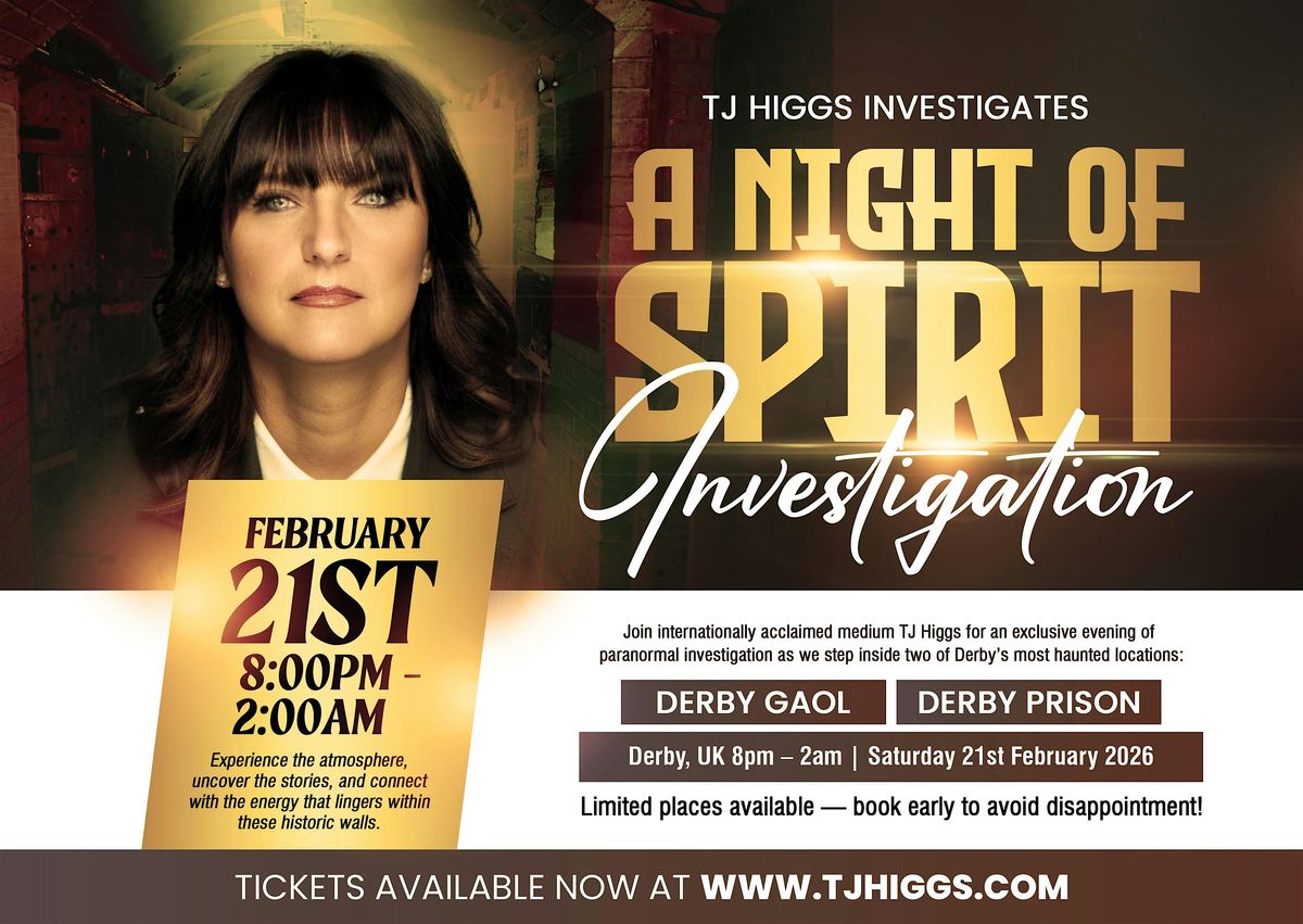 Step into an extraordinary night of Spirit investigation with TJ Higgs as we explore the atmospheric Derby J*il and the historic Derby Pr*son. These sites hold deep layers of energy, emotion, and echoes of the lives once lived within their walls—making them the perfect locations for sensitive spiritual inquiry.