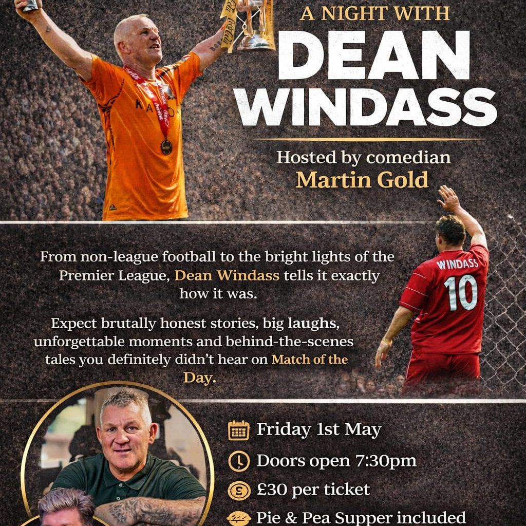 Ever wanted to meet the man himself? Well here's your chance, a night with Dean Windass, hosted by comedian Martin Gold.