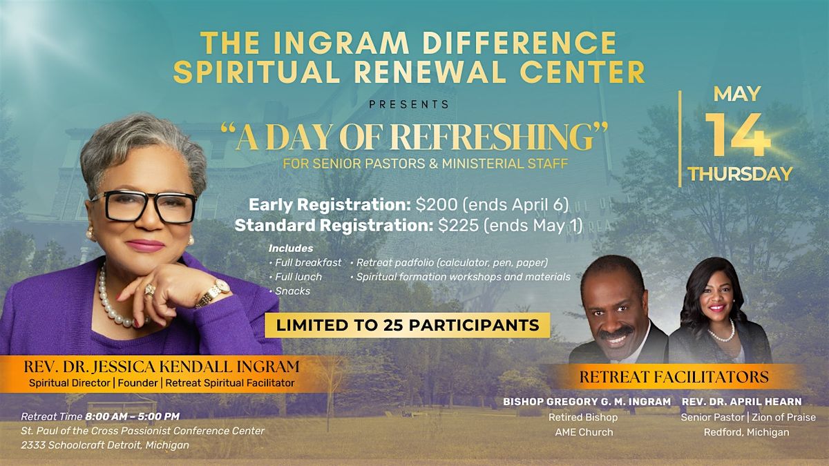 Through guided moments of prayer, reflection, and quiet space, participants will have the opportunity to reconnect spiritually, gain renewed strength, and return to ministry refreshed.