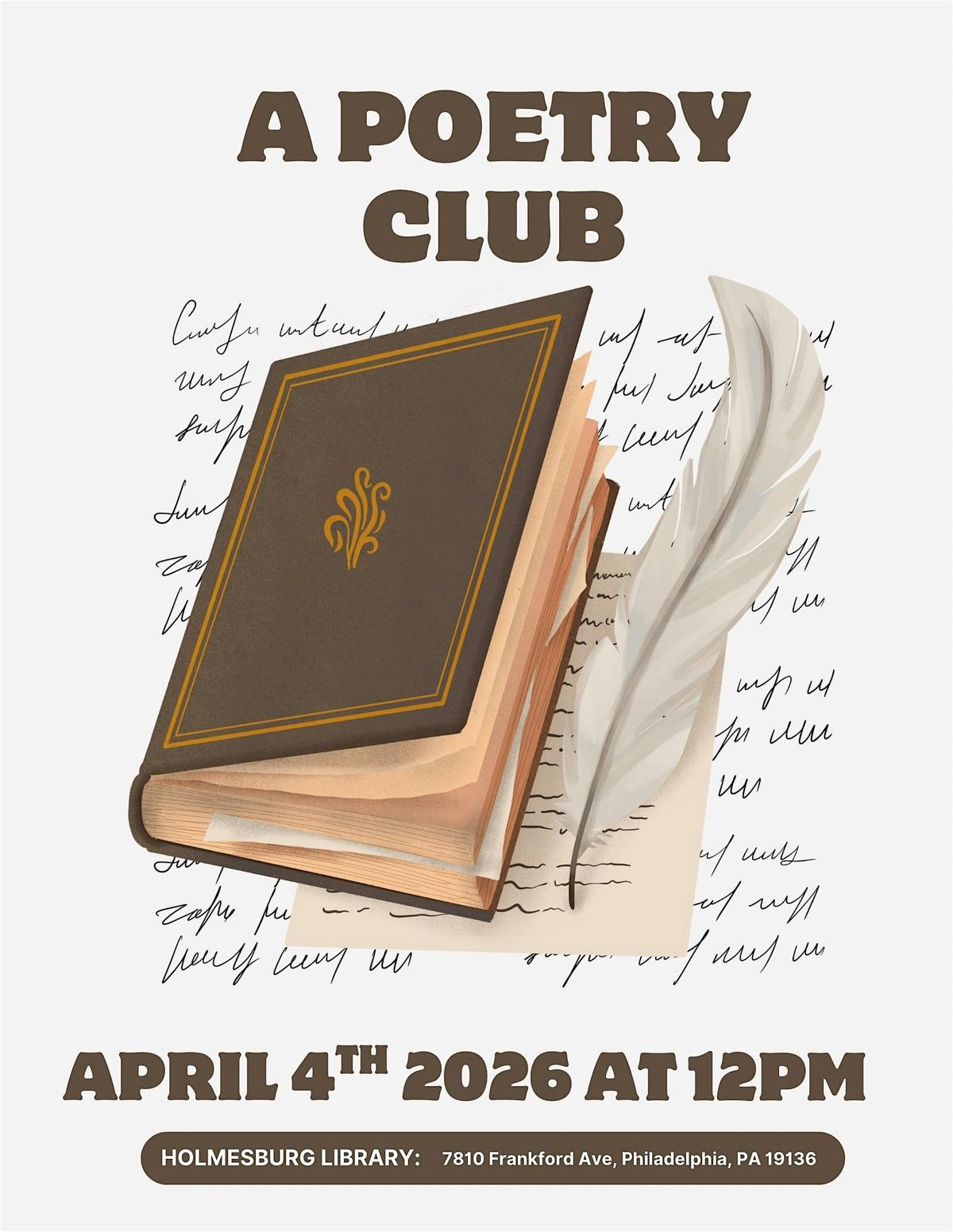 Come join our Poetry Club for a chill, in-person hangout where words come alive! Whether you're a seasoned poet or just love listening to some cool verses, this is the spot for you. Share your own creations or just kick back and enjoy the vibes with fellow poetry fans. Don't miss out on the fun, inspiration, and awesome conversations. See you there!