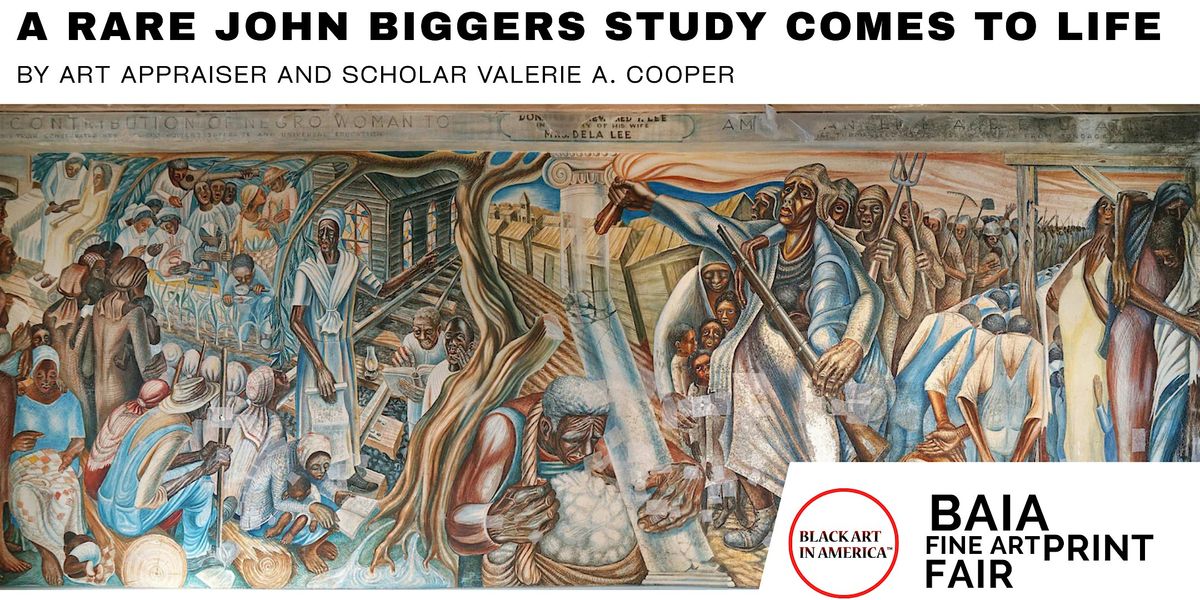 At the BAIA Fine Art Print Fair in Houston, Black Art in America presents a rare and historic moment: the first public exhibition of an early study by John Biggers, created in the early 1950s and foundational to his iconic mural The Contribution of the Negro Woman to American Life. Shown alongside a print of the completed mural, this presentation offers a powerful window into Biggers’ creative process and vision.