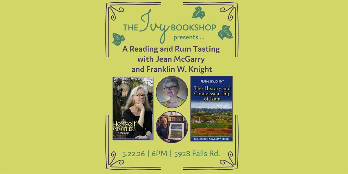 What links Jean McGarry's new memoir, reflecting on a life originally grounded in Catholicism, and Franklin W. Knight's new book The History and Connoisseurship of Rum? As it turns out, it's the ability to slow down and to savor--to consider the impact of the flavors that shape lives, cultures, and geographies-- so we're going to do just that on the Ivy patio on Friday, May 22nd.