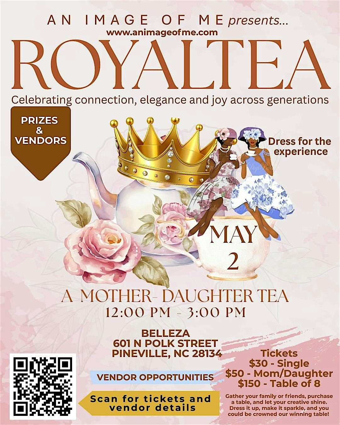 Join AN IMAGE OF ME for our enchanting Royal Tea Mother–Daughter Tea, a beautiful gathering designed to honor the bond between mothers, daughters, grandmothers, aunts, mentors and the women who pour into our girls.