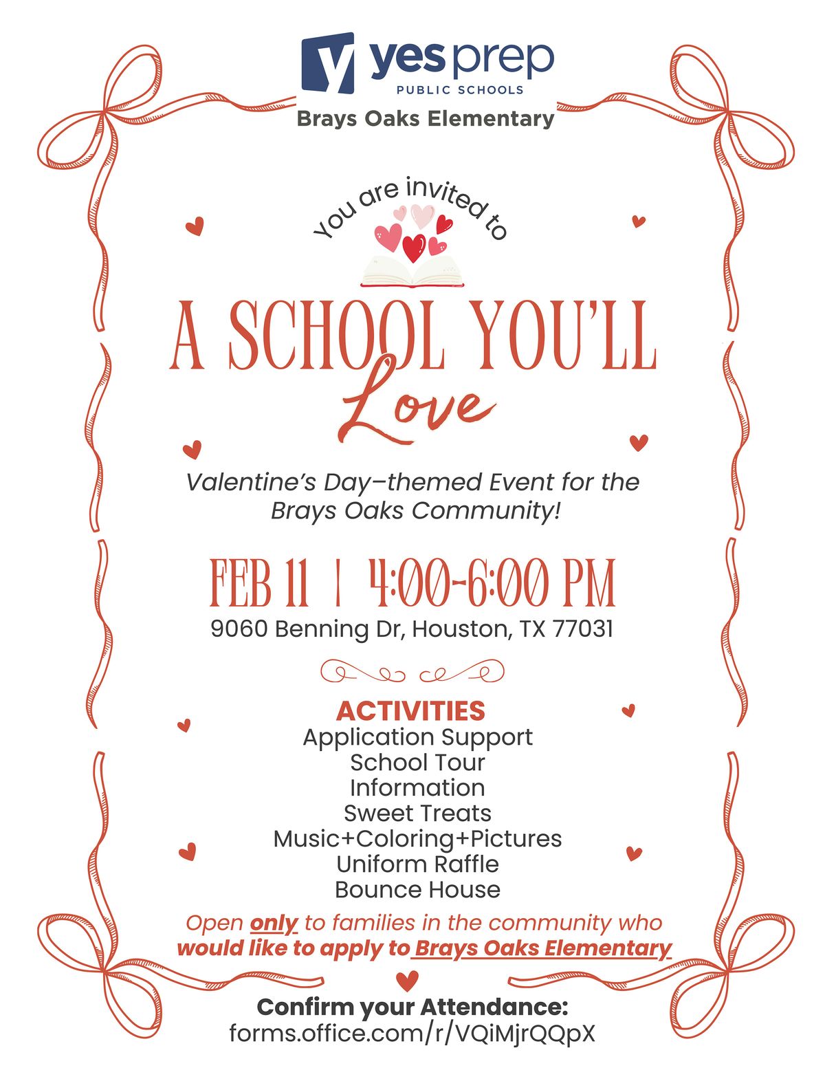 Open only to families in the community who would like to apply to Brays Oaks Elementary