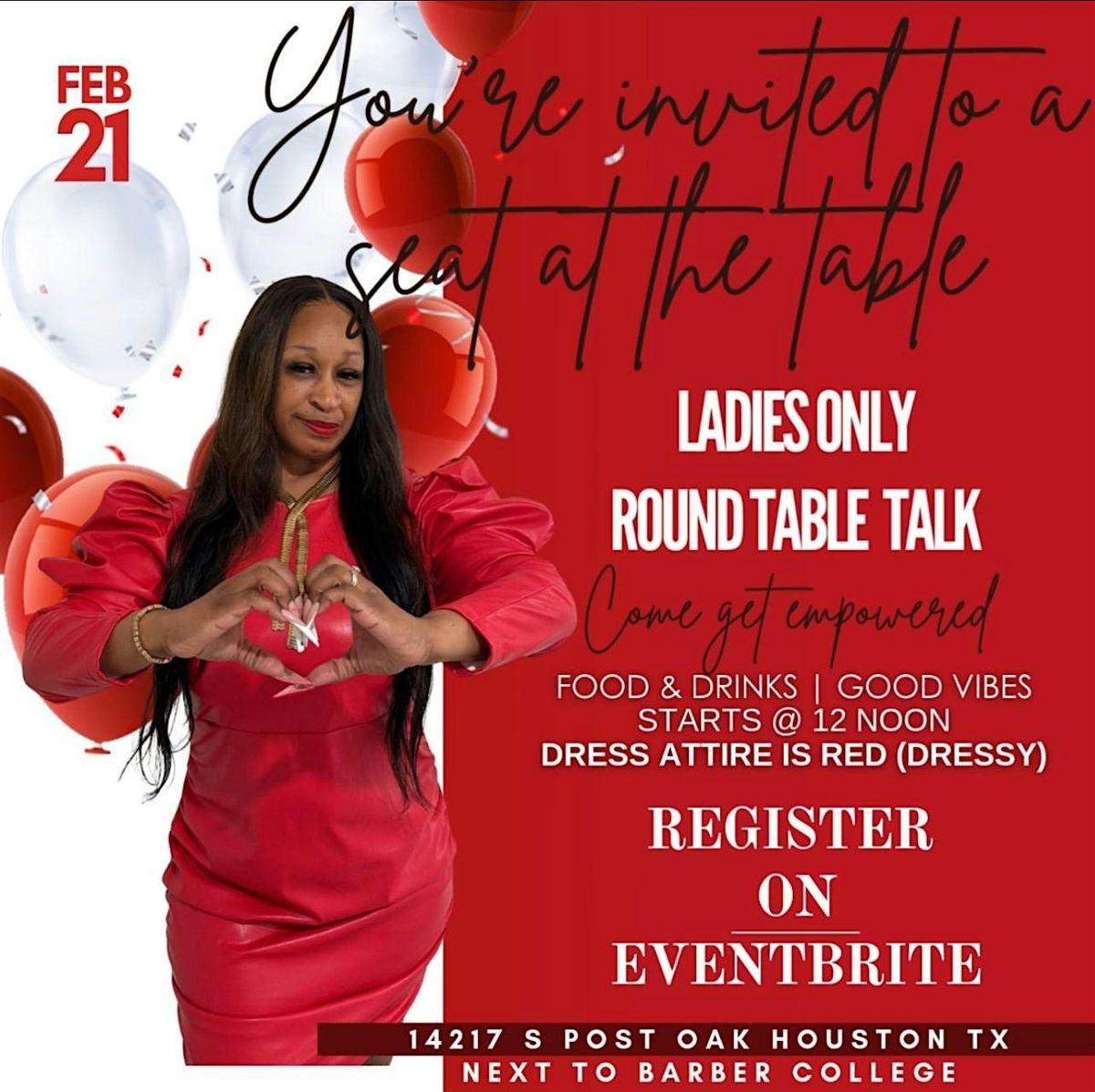 Join us for a unique event where everyone gets a seat at the table to be empowered, loved, and to spread good vibes. You can sit with us!