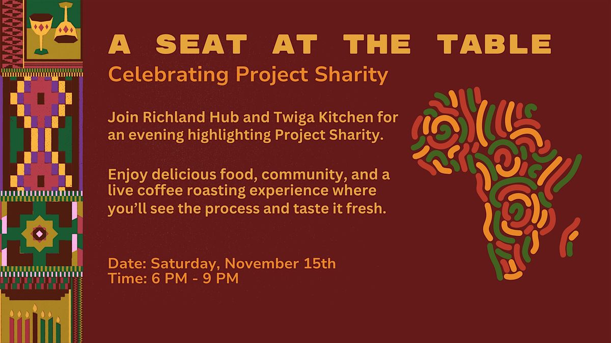 Join us for A Seat at the Table / Swahili Night: Celebrating Project Sharity — a vibrant evening hosted by Richland Hub and Twiga Kitchen.