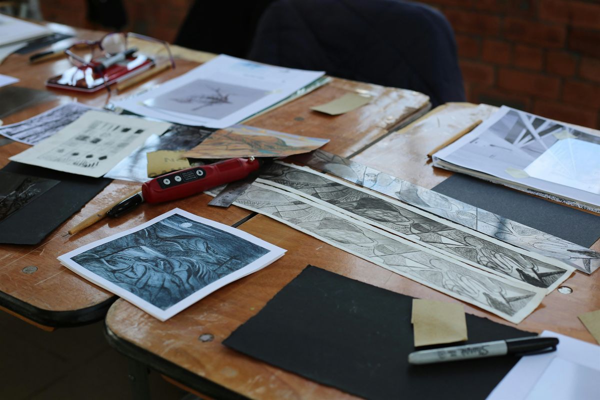Printmaking can get messy, please wear old clothes or bring an apron. Cath will provide gloves and all other materials.