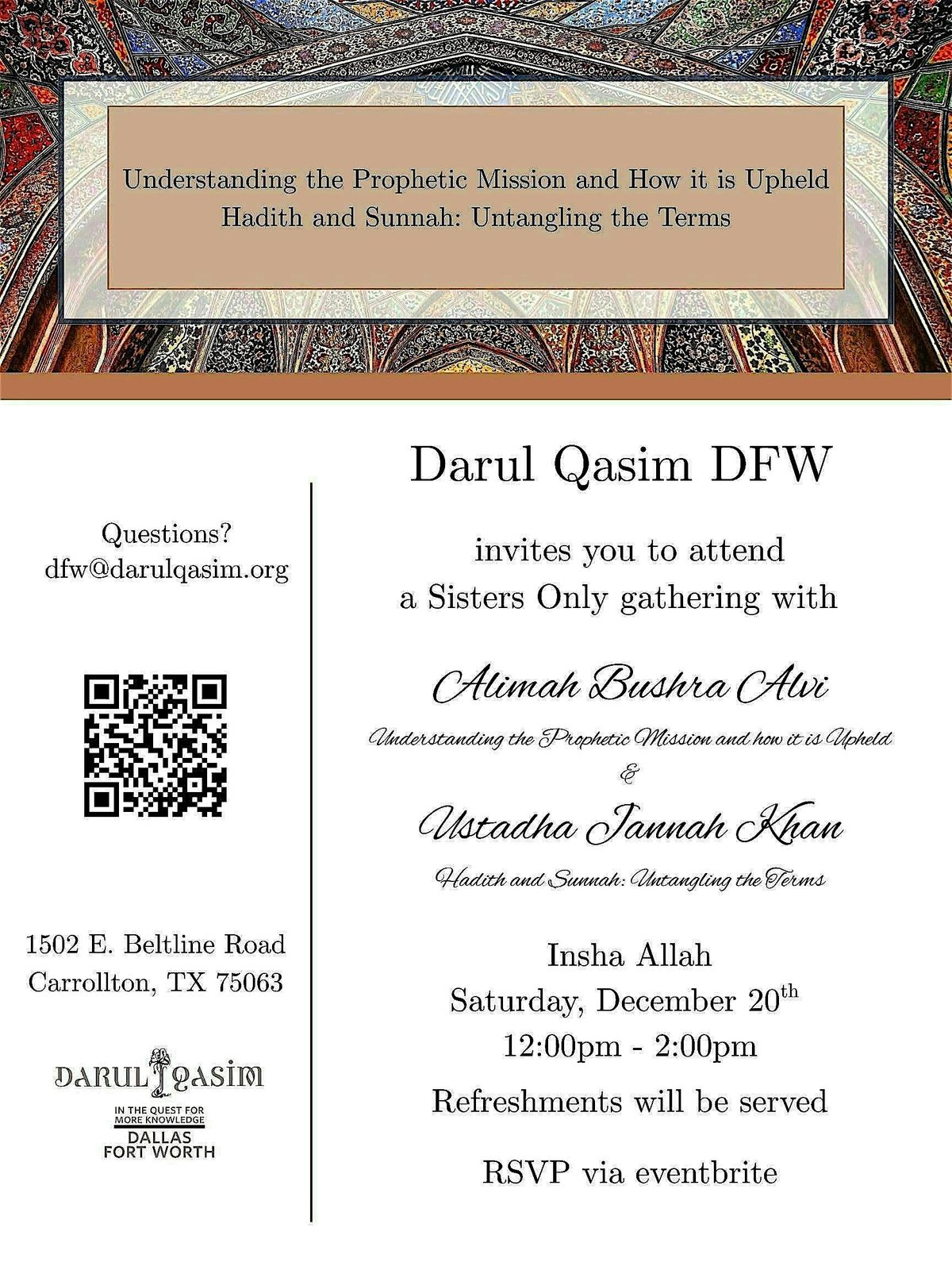 A Sisters gathering with Alima Bushra Alvi and Ustadha Jannah Khan