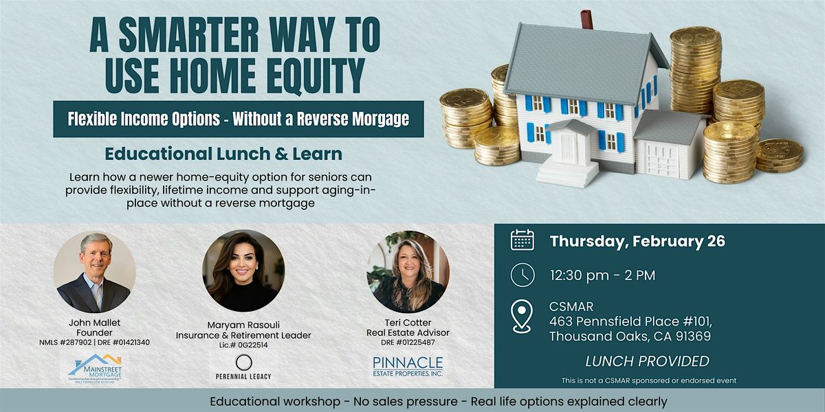 This educational Lunch & Learn brings together three experienced professionals to discuss a new home-equity option for seniors that offers more flexibility than a traditional reverse mortgage—and how it can be used as part of a thoughtful retirement and income plan.