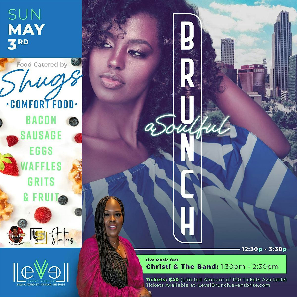 Step into an unforgettable Sunday experience at A Soulful Brunch at Level Event Center—where great food, live music, and elevated vibes come together. This curated brunch event features a delicious comfort food spread catered by Shugs Comfort Foods, including favorites like bacon, sausage, eggs, waffles, grits, and fresh fruit. Set against a vibrant atmosphere, guests will enjoy live music from Christi & The Band, creating the perfect soundtrack for an afternoon of connection, culture, and good energy. Whether you're coming to unwind, celebrate, or simply enjoy a high-quality brunch experience, this is where soulful sounds and amazing flavors meet. Limited tickets available—secure your spot and be part of the vibe.