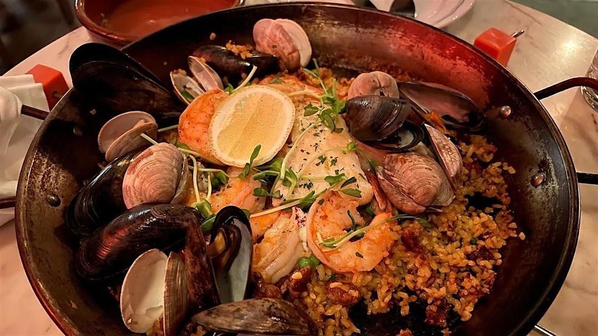 This is more than a standard reservation. Expect a lively, modern Madrid–inspired setting featuring deep tones, hand-painted murals, and an energetic urban vibe. Enjoy a thoughtfully curated menu of fire-kissed tapas, signature seafood paella, complemented by house cocktail.