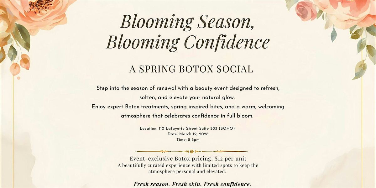 Come join us at 110 Lafayette St Suite 503 for a fun and rejuvenating event! Get ready to pamper yourself on March 19, 2026 at 5:00 PM (Eastern Time). Let's relax, socialize, and enjoy some refreshments together. Whether you're a Botox pro or curious to try it out, this is the perfect opportunity to treat yourself. Don't miss out on this fantastic gathering!