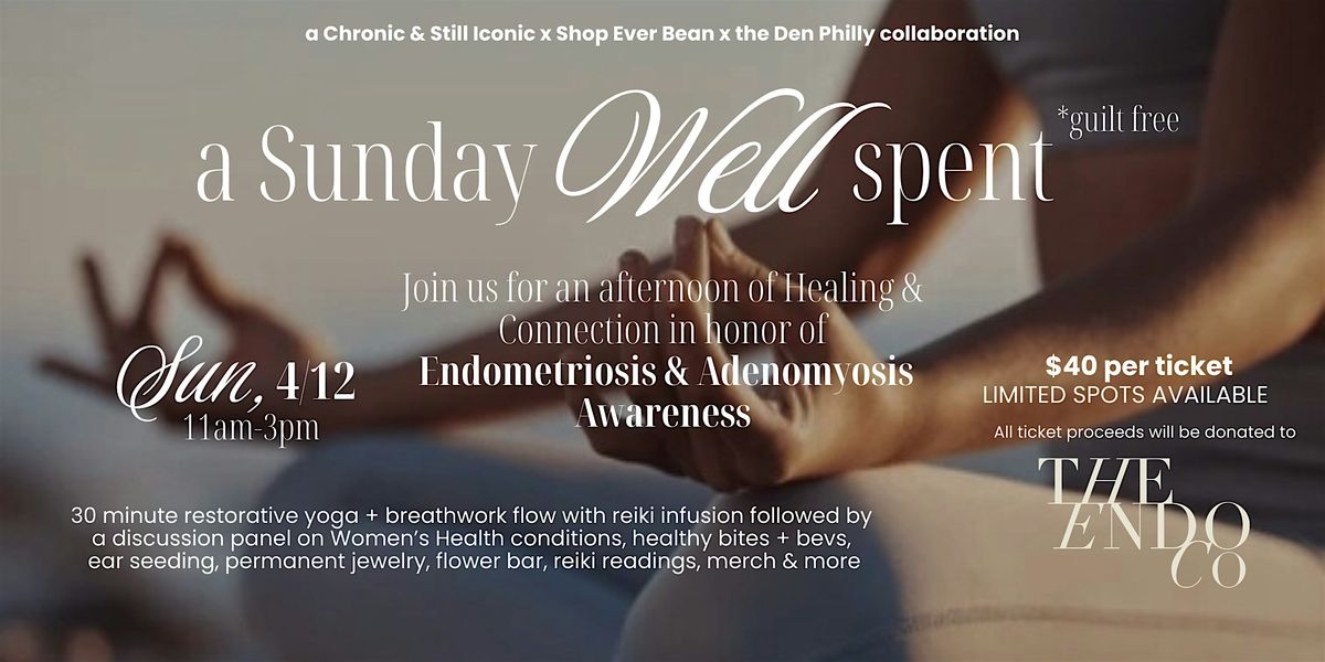Join us at The Den Yoga & Wellness Studio on April 12, 2026 at 11:00 AM for a good cause. More and more girls and young women are being diagnosed with health conditions like PCOS, fibroids,Endometriosis and Adenomyosis; and yet there's still so little information out there. Our goal with this event is to spread awareness and help bring a sense of both relief and community to those who are currently feeling lost in the dark. Join us for a 30 minute restorative yoga + breathwork flow with reiki infusion followed by a discussion panel on Women’s Health conditions, healthy bites + bevs, ear seeding, permanent jewelry, flower bar, reiki readings, merch & more! All ticket proceeds will be going to non-profit, the Endo Co.