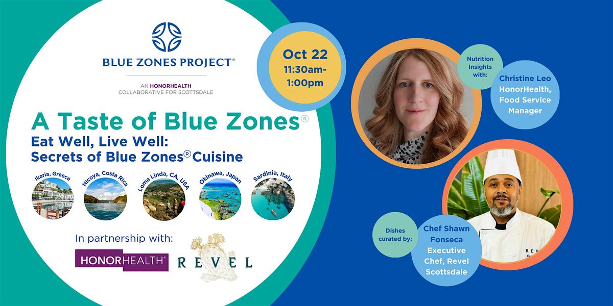 As you sample flavors of places like Okinawa, Ikaria, or Sardinia, Christine Leo, Food Service Manager at HonorHealth, will share insights into the nutritional aspects behind these foods and how they support long-term health and vitality.