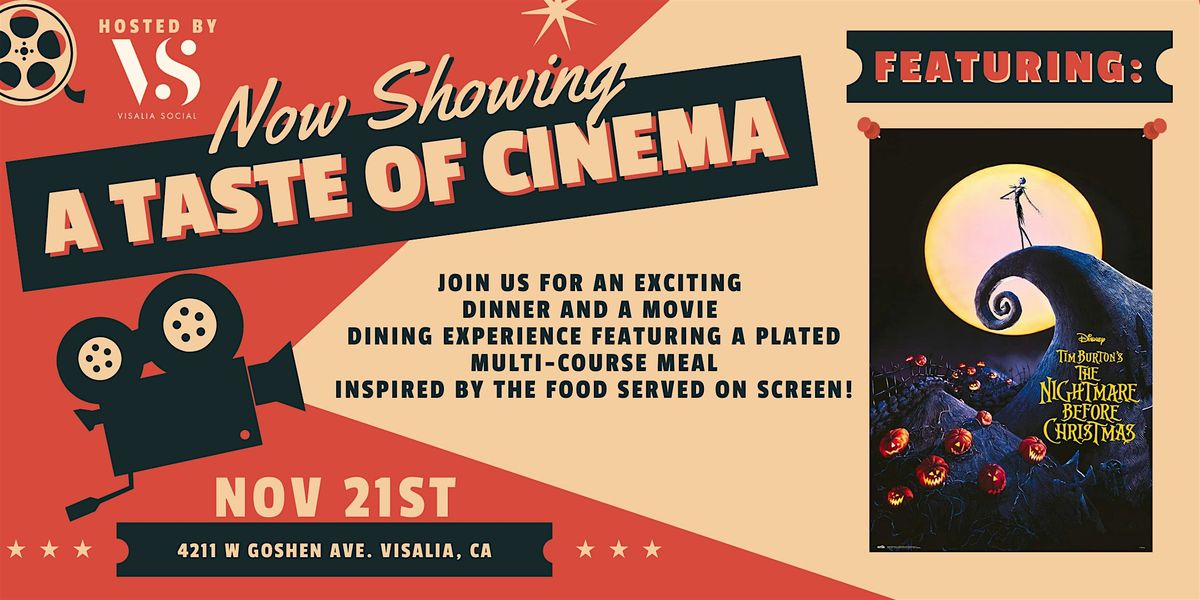 🎥 Big-screen showing of The Nightmare Before Christmas in a dining, cinematic setting
