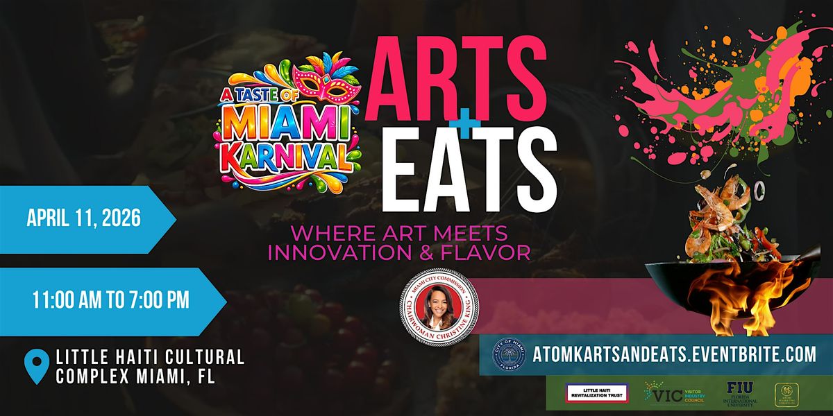 Kick Off A Taste of Miami Karnival Weekend, with ARTS+EATS, featuring interactive art sessions, chef showcases, engaging panels, and a thrilling culinary competition.In proud partnership with Chairwoman Christine King of the City of Miami, Miami Marketing Strategies, Inc. this one-day cultural celebration that fuses the Caribbean diaspora together through art, and food.
