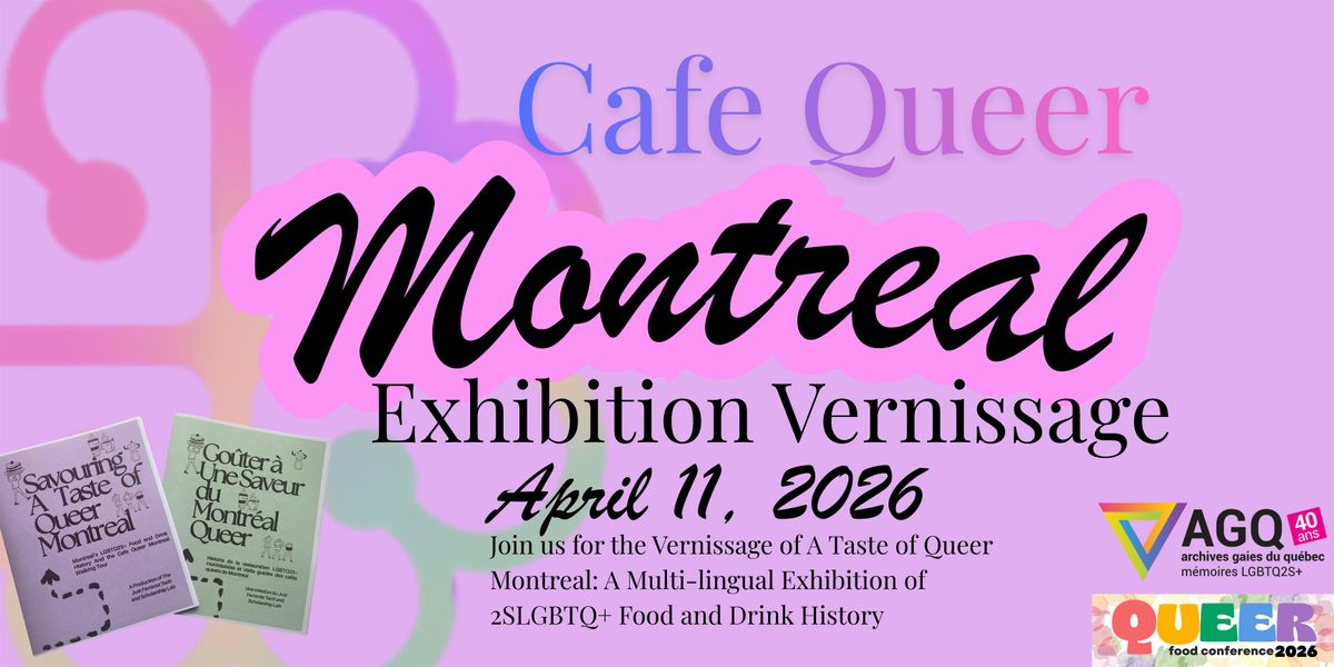 Join us for the vernissage of A Taste of Queer Montreal: A Multi-lingual Exhibition of 2SLGBTQ+ Food and Drink History. See the new exhibition, hear talks from the curators, and enjoy the newly composed Exhibition House Mix Track interweaving oral histories, Montreal's historical house music, and new compositions.