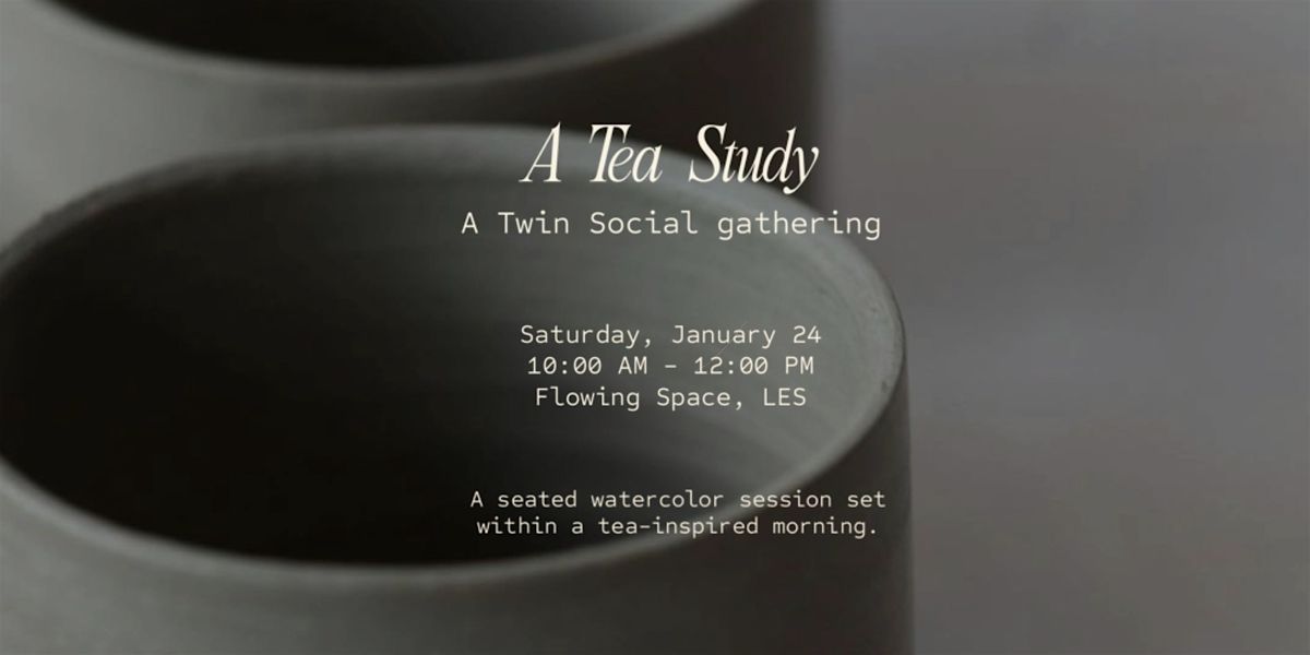 A Tea Study is a calm, seated watercolor session centered on tea and quiet making, hosted by Twin Social and held in Flowing Space's tatami room in the Lower East Side.