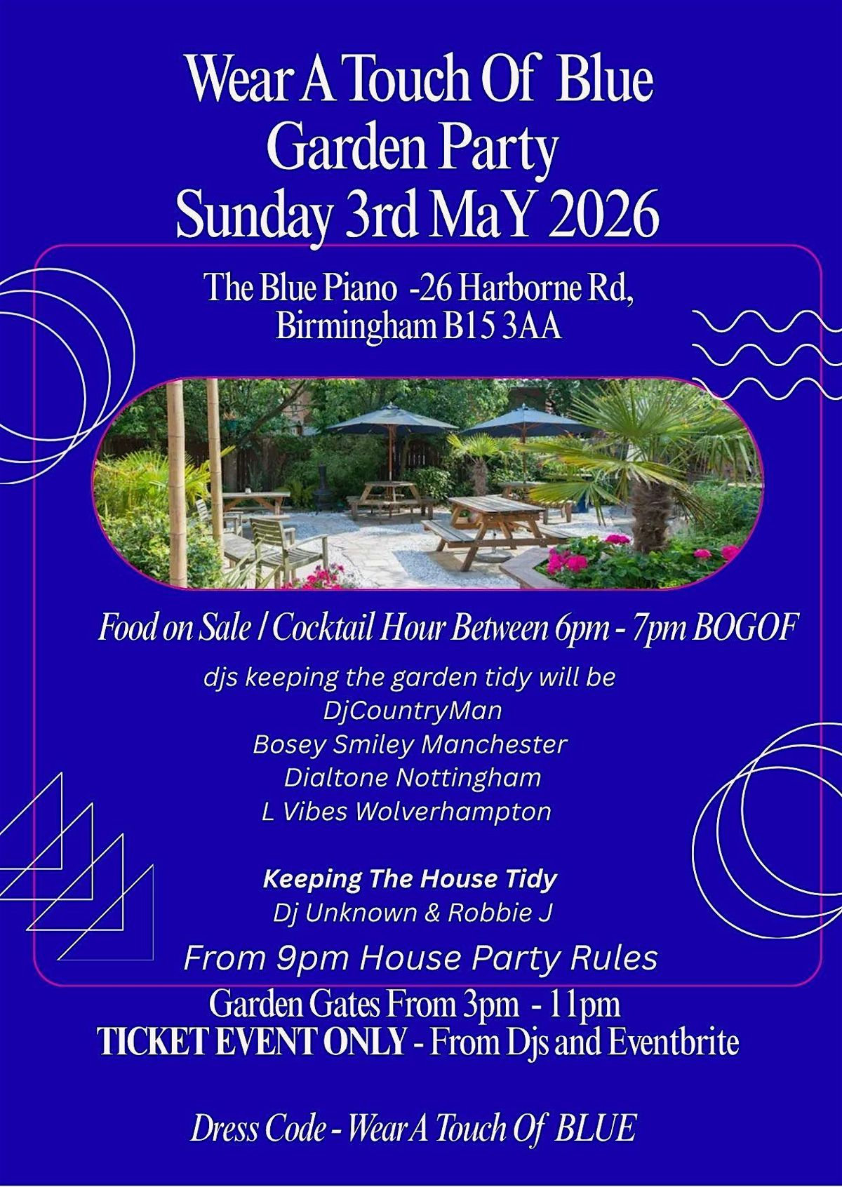 Come join us at The Blue Piano for a magical evening filled with music, food, and fun! Our garden party will transport you to a whimsical world of blue where you can relax and unwind with friends and family. Enjoy live music performances, delicious cocktails, and delectable bites in a beautiful outdoor setting. Don't miss out on this unique experience - reserve your spot now!