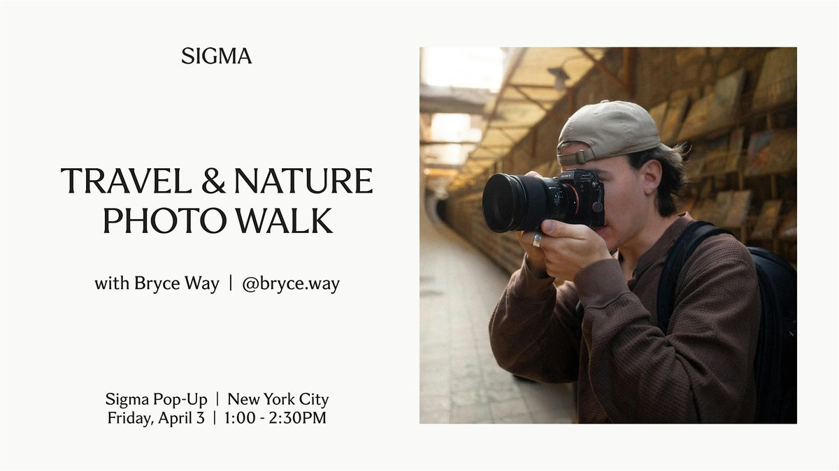 On Apr. 3, Bryce will lead a photo walk along the High Line. A model will join the group, giving participants the chance to create portraits within natural, landscape-forward city scenes. Shoot with Sigma lenses in real time as Bryce offers hands-on direction, compositional guidance, and in-the-moment feedback throughout. Participants may also register to use the Sigma BF paired with a Sigma I-series lens during the walk (limited availability; first-come, first-served).