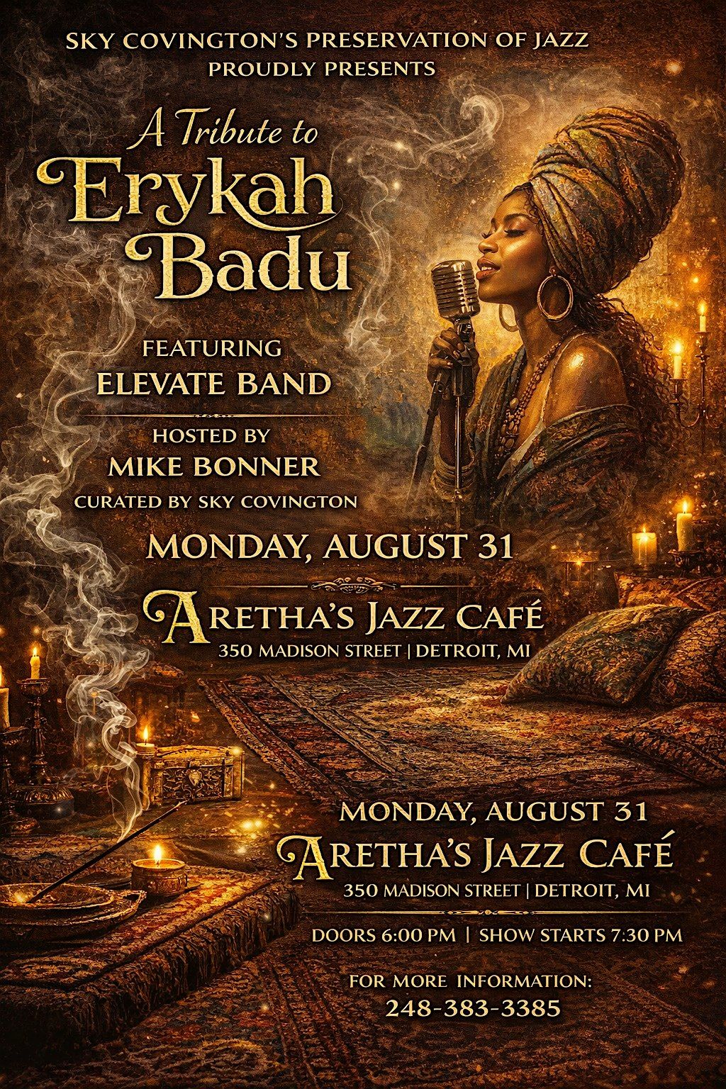 Get ready for an unforgettable night celebrating the soulful vibes of Erykah Badu! Join us in person as Elevate Band brings her iconic tunes to life with smooth grooves and killer performances. Whether you're a die-hard fan or just love good music, this event's got the chill vibes you don’t want to miss. See you there!