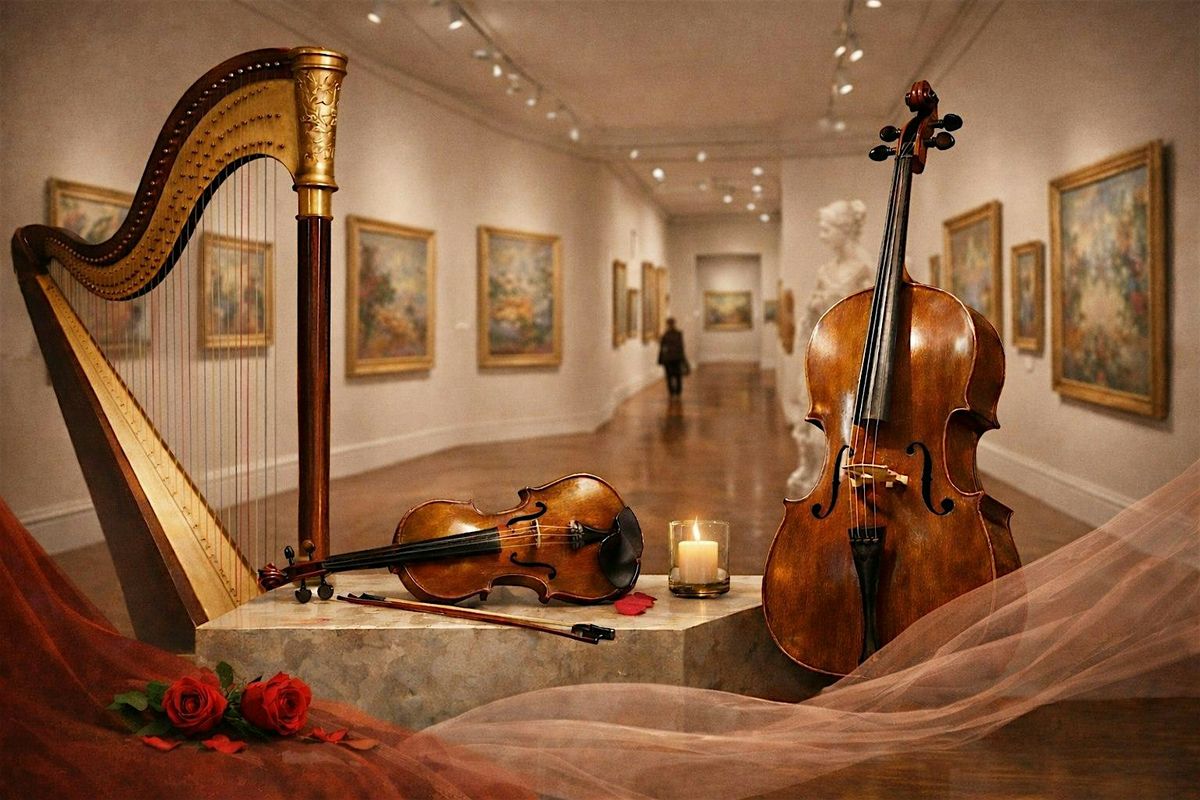 Celebrate Valentine's Day with your partner at an intimate concert of love songs on violin, cello, and harp set within the beauty of an art gallery. Familiar melodies will be performed in a classical crossover style. Guests will enjoy a chocolate-dipped strawberry and sparkling cider as part of the evening. Follow along @utahmusiccollaborative for the setlist to be revealed!