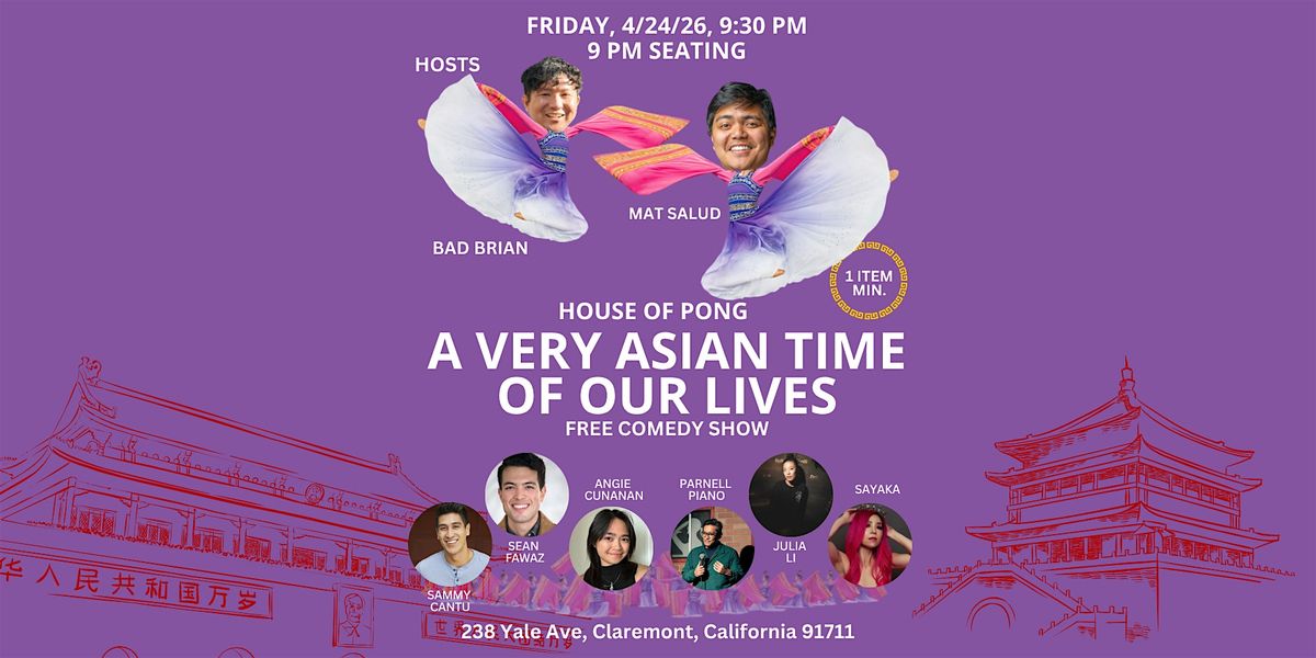 Downtown Claremont's House of Pong is hosting a FREE comedy show featuring some of the hottest up and coming Asian American comedians in Southern California and beyond! One-item minimum purchase required of all guests. Seating takes place at 9:00pm and showtime promptly starts at 9:30pm.