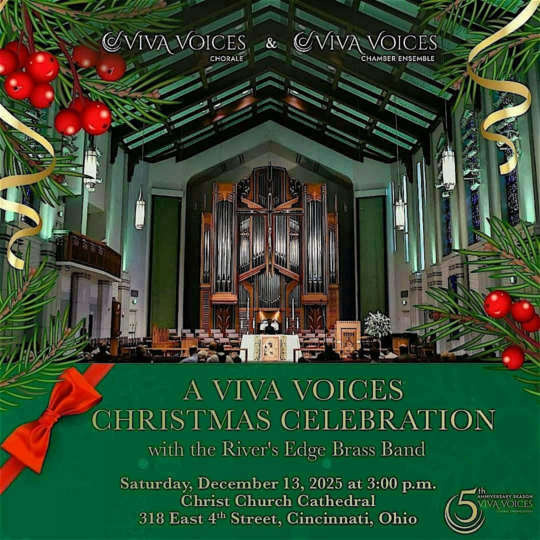 Come join us for a festive afternoon at Christ Church Cathedral! Get into the holiday spirit with beautiful music and joyful voices featuring the 115-voice Viva Voices Chorale, Chamber Ensemble, and special guests - the River's Edge Brass Band! Don't miss out on this special Christmas celebration!