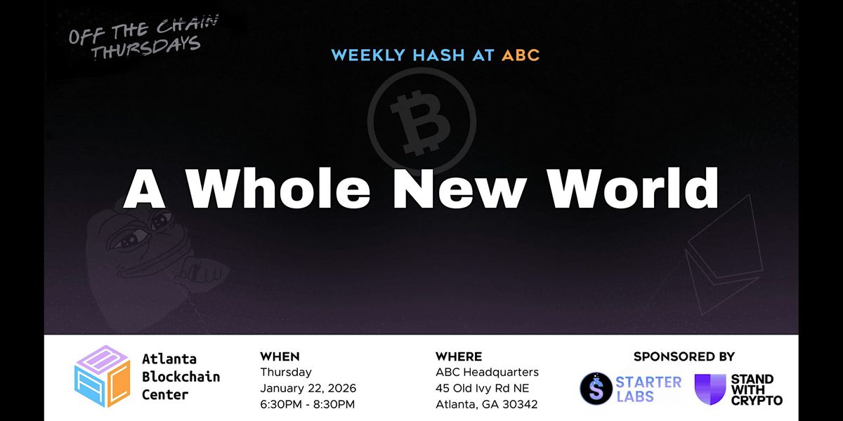 Our mission at Atlanta Blockchain Center is dubbed simply as #10in5 - making Atlanta a top 10 global blockchain, crypto, and Web3 innovation hub in 5 years. ABC is a place to build community and learn. We host an event each and every Thursday at our co-working space in Buckhead. These meetups are aimed at providing a consistent space for the ATL Web3, crypto, and blockchain scene to engage, connect, and most importantly, BUIDL. Join us. It's time to Takeoff 🚀