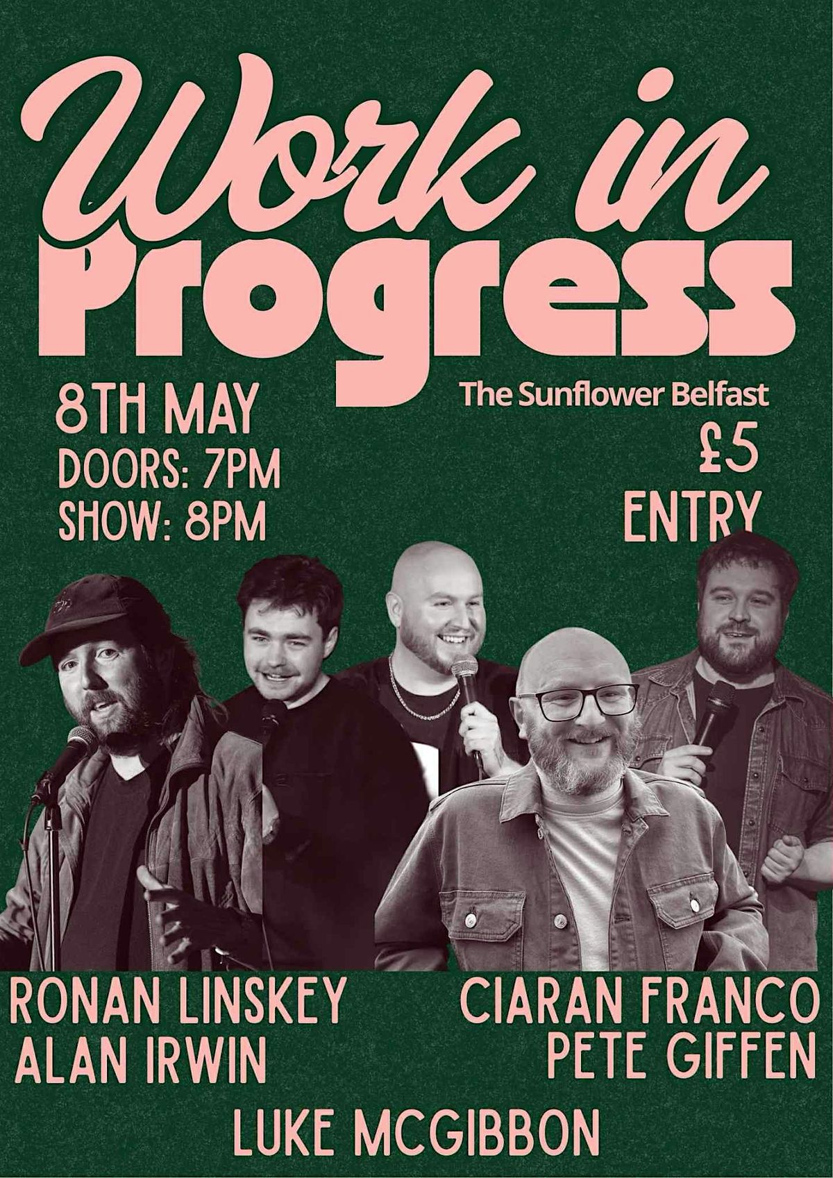 Work-in-progress stand-up. New material, new ideas. Pete Giffen, Alan Irwin, Luke McGibbon & Ciaran Franco. MC Ronan Linskey. £5.About this Event