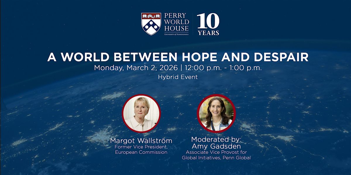 Join Perry World House for a conversation with Sweden’s former Minister of Foreign Affairs and Perry World House Distinguished Visiting Fellow, Margot Wallström, on the state and future of democracy.