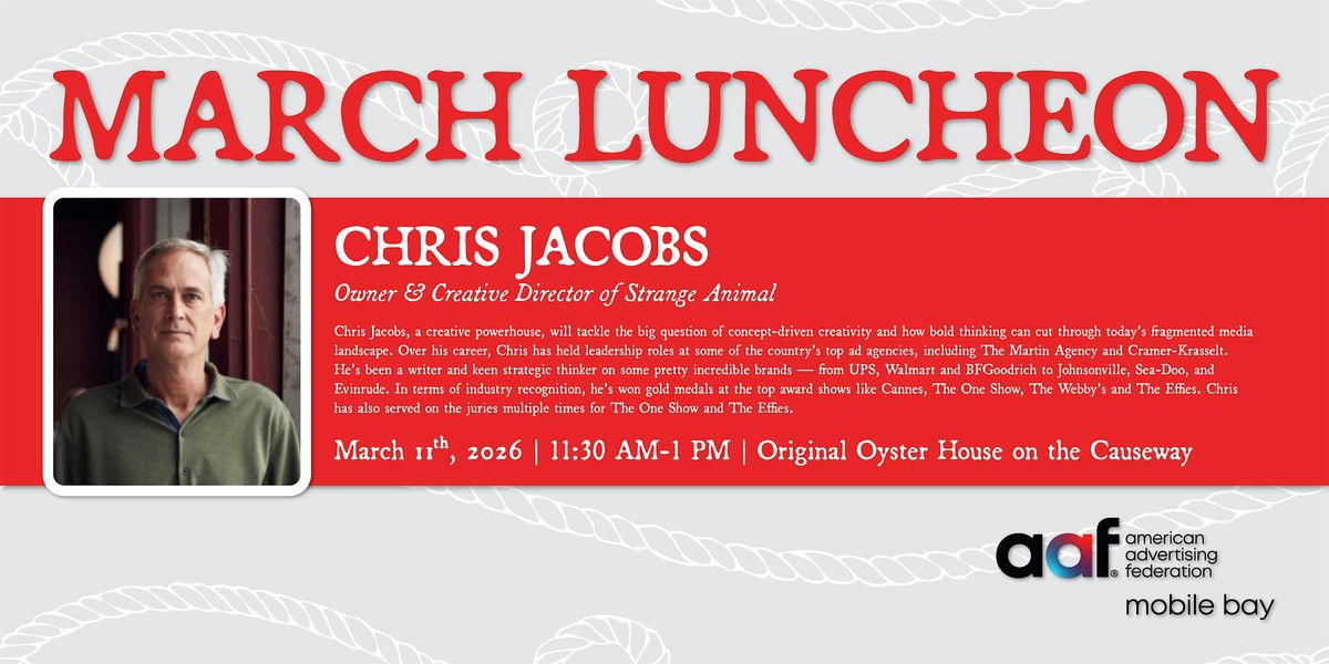 Join AAF Mobile Bay for our March Luncheon featuring Chris Jacobs, Owner & Creative Director of Strange Animal!