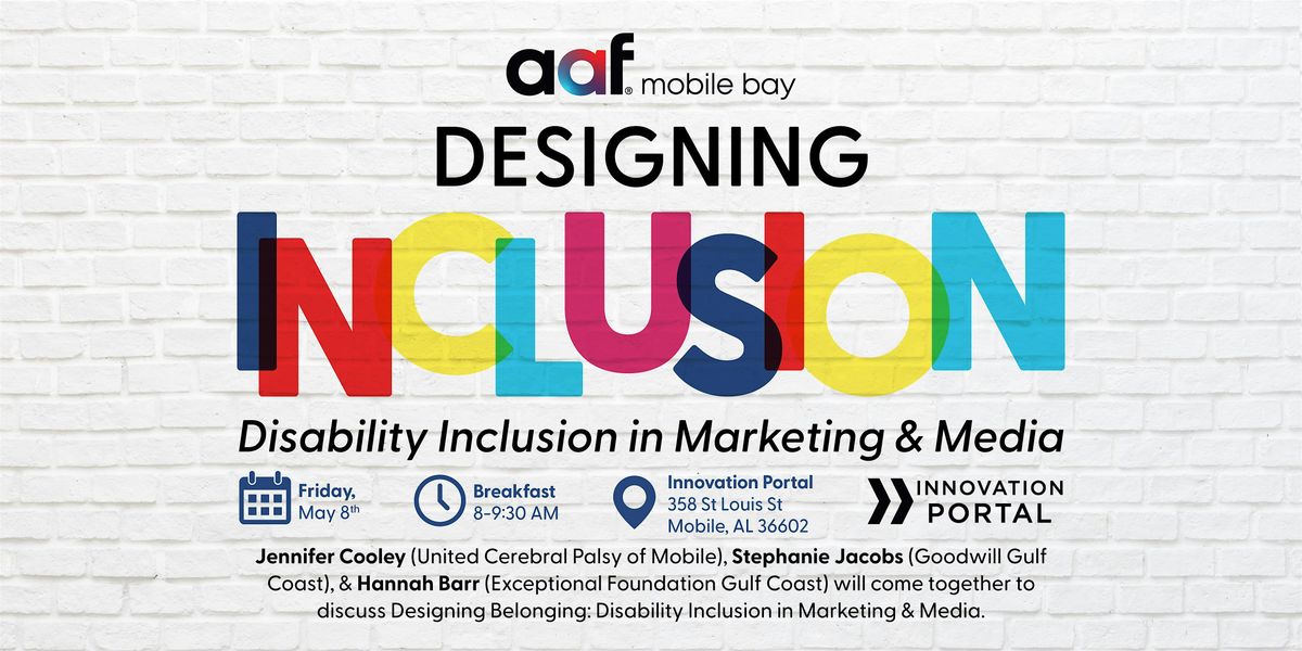 Join AAF Mobile Bay for a morning panel on Designing Inclusion: Disability Inclusion in Marketing & Media! Hear from local leaders as they share insights on creating more inclusive, accessible marketing and meaningful representation. Enjoy breakfast, connect with fellow professionals, and leave with practical takeaways you can apply in your work!