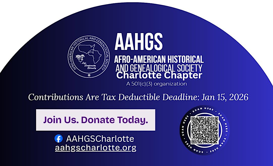The AAHGS Charlotte Genealogy Conference 2026 is a premier event dedicated to preserving and celebrating African American heritage. With engaging lectures, historical accounts, and community storytelling, the conference highlights contributions from 1619 to 1970. Pre-registration includes lunch and entry into our door prize drawing, creating a welcoming and memorable experience for all attendees.