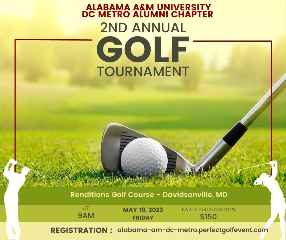 Registration is NOW open for the 2nd Annual DC Metro Alumni Golf Tournament! Join us on Friday, May 19, 2023 at Renditions Golf Course. Early registration is $150 per player and includes green fees, cart fees, breakfast bar, seated luncheon and drink tickets. In addition, each player will receive a swag bag with event gifts and coupons.