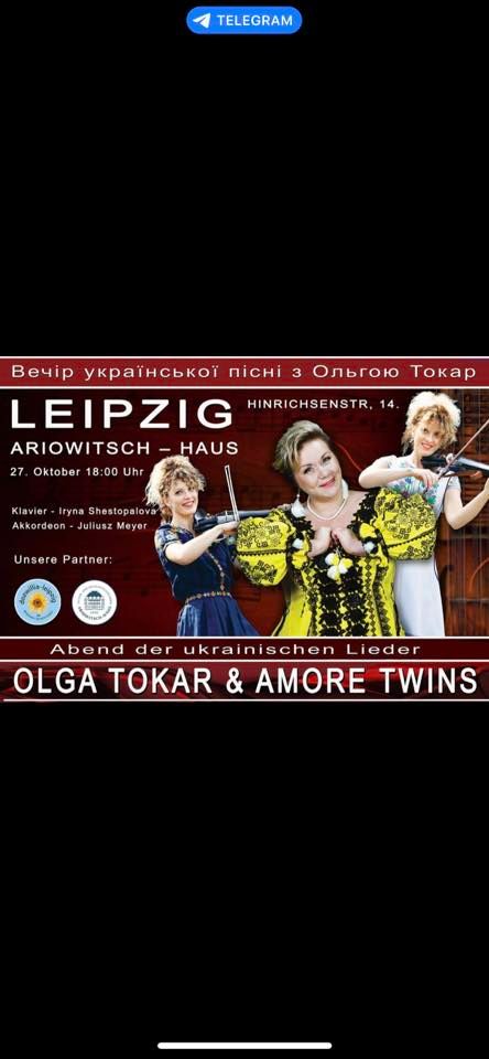 Abend der ukrainischen Lieder mit Olga Tokar und Amore Twins/ Вечір української пісні