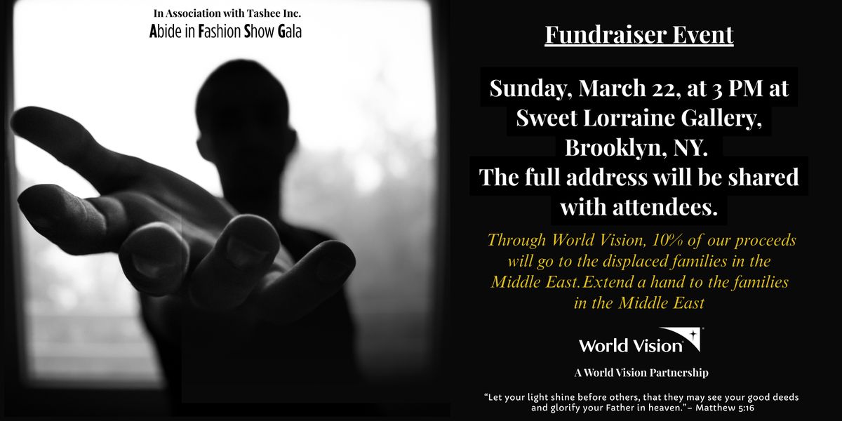 10% from our 2026 Abide in Fashion Show Gala proceeds will support humanitarian relief efforts, and Abide in Fashion Gala Inc., in association with Tashee Inc., is hosting its first fundraising event to initiate the process.