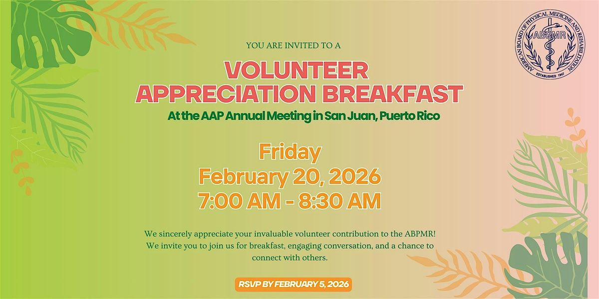 Welcome to the ABPMR Volunteer Appreciation Breakfast at the AAP Annual Meeting in San Juan, Puerto Rico!