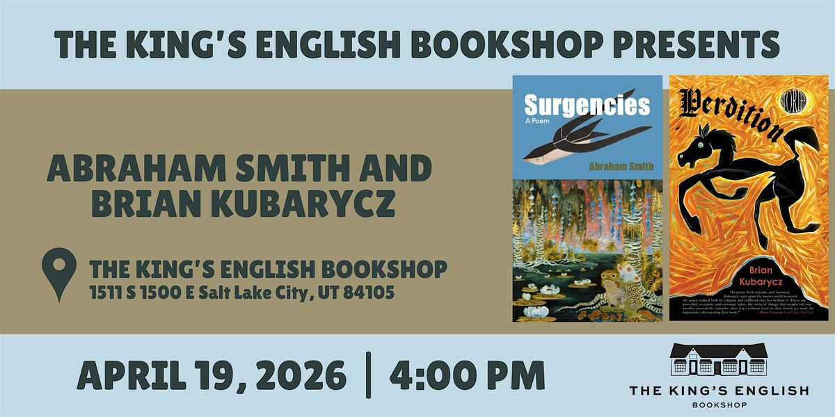 We are thrilled to welcome Abraham Smith and Brian Kubarycz to The King's English to celebrate their new poetry collections, Perdition and Surgencies.