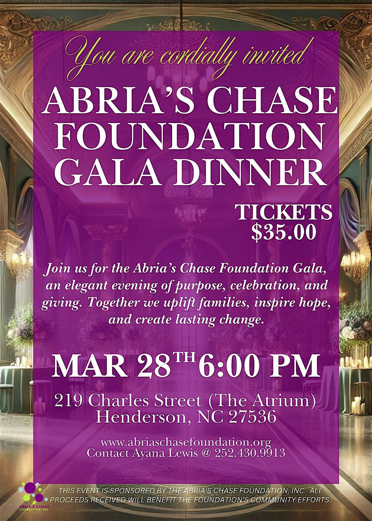 Enjoy an elegant evening of dining, celebration, and purpose as we come together to inspire hope, and support meaningful community initiatives. All proceeds benefit the Abria’s Chase Foundation’s programs and outreach efforts.