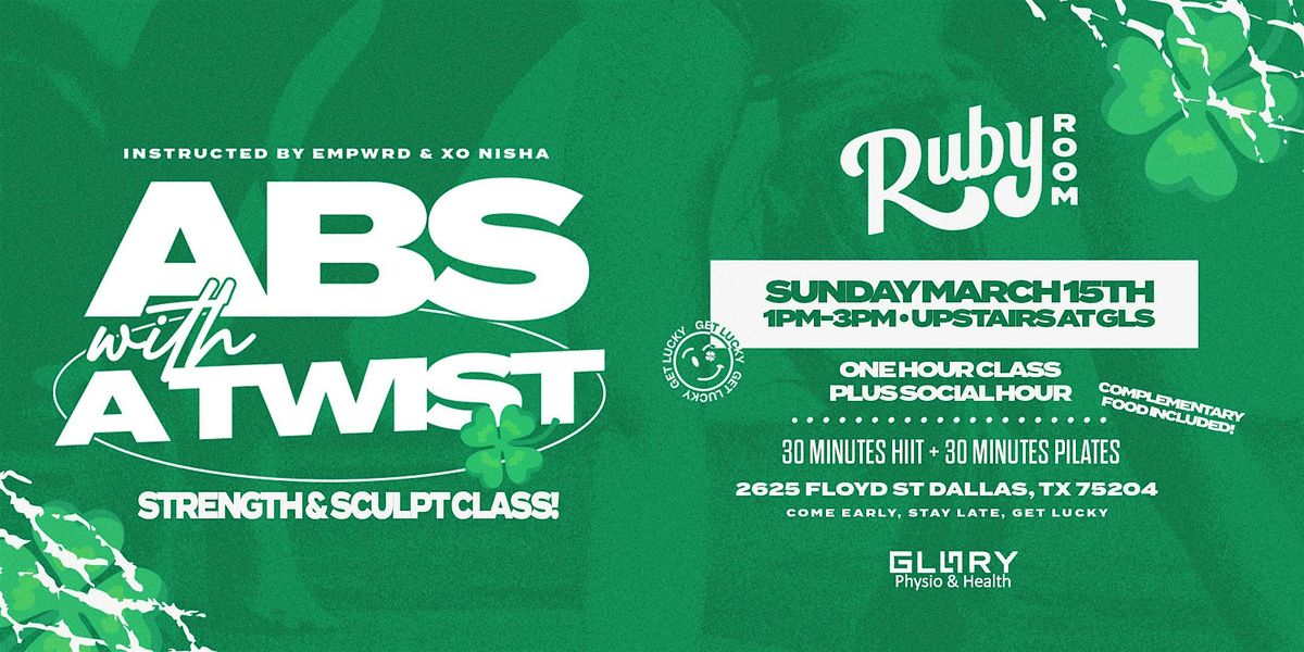 Join us for a St. Paddy’s Edition: Abs With a Twist on the Rooftop Patio! Hosted by Ceez (@the_empowered_llc) and XO Nisha (@Nishaxojade), this festive class blends strength, core-focused movement, and high-intensity intervals in an upbeat rooftop setting.