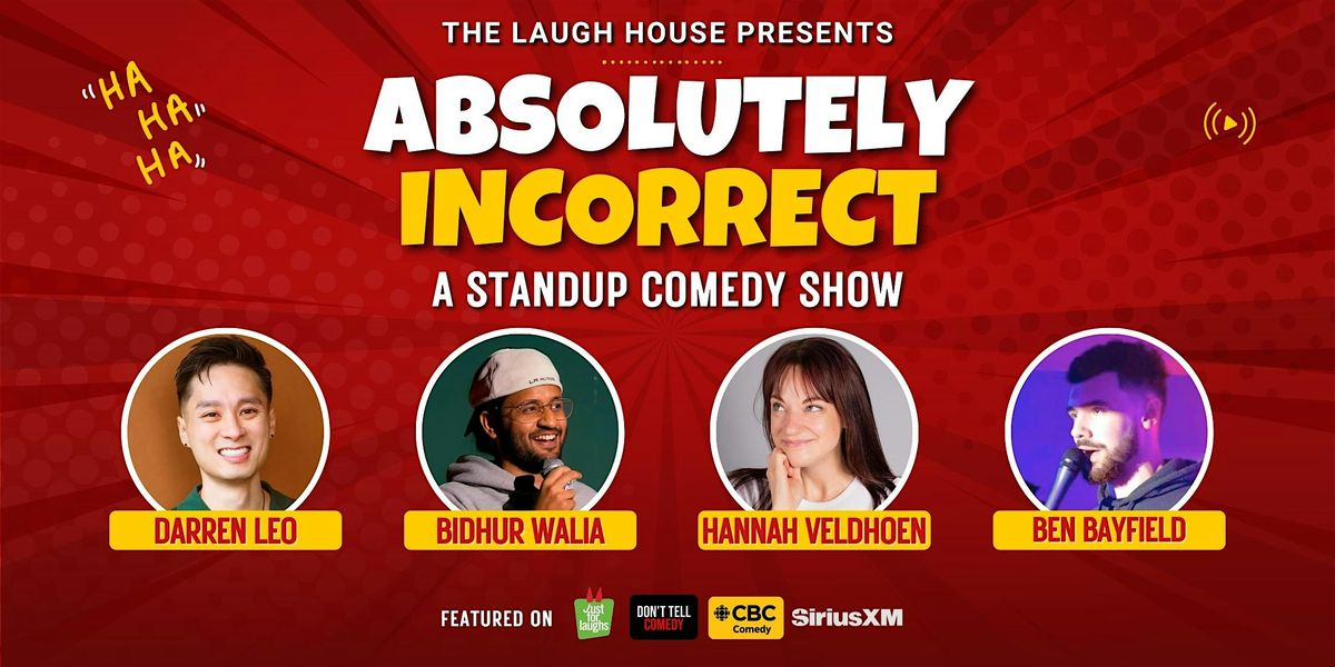 The Laugh House presents Absolutely Incorrect - a stand-up comedy show where comedians confidently deliver the wrong takes, bad logic, and wildly questionable opinions! Expect sharp jokes, bold perspectives, and a night of being absolutely incorrect!