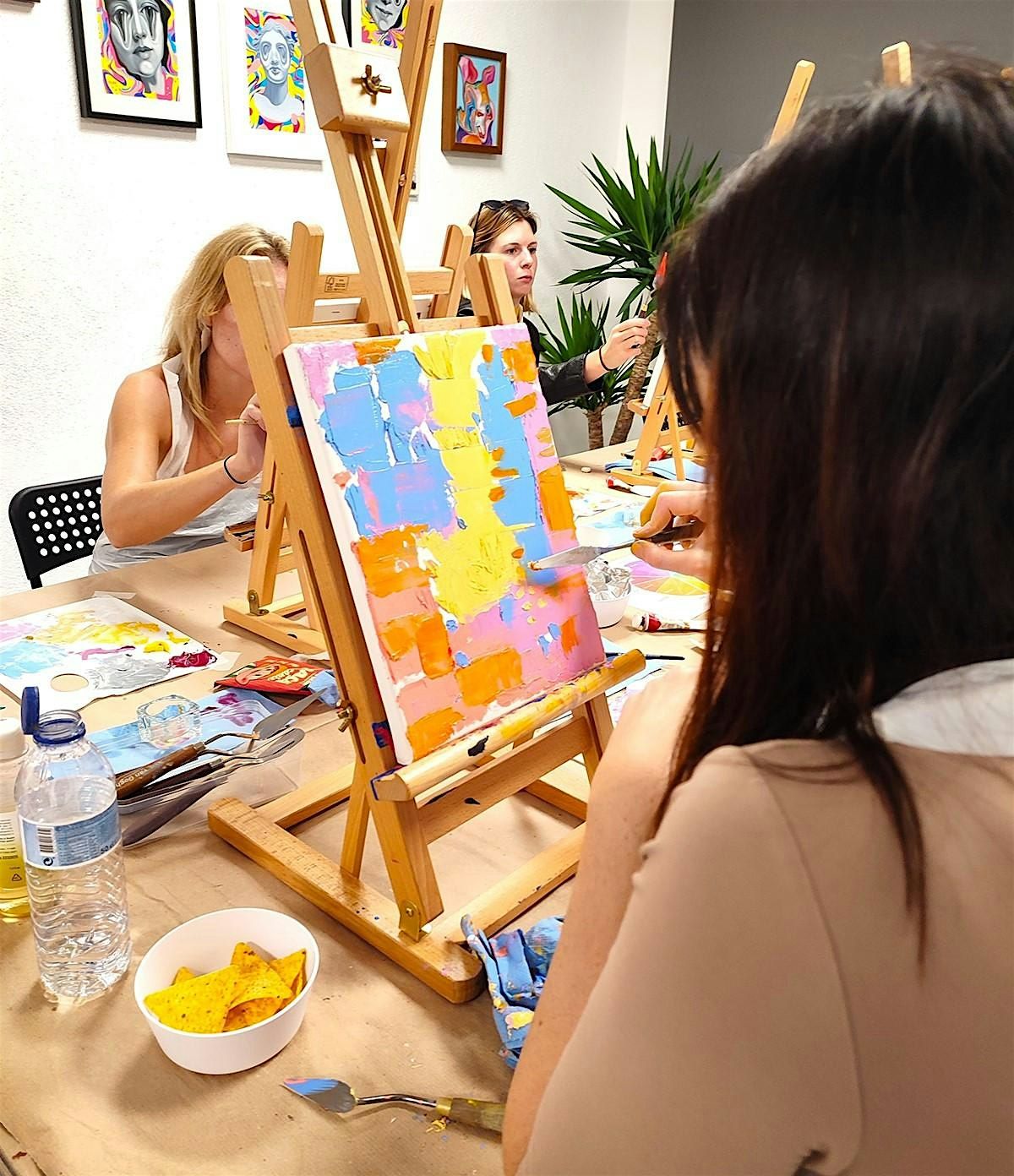 With the guidance of our artist, you will learn how to paint an abstract masterpiece in the oil painting technique. You will explore how to paint with oil colors just by using the palette knives.
