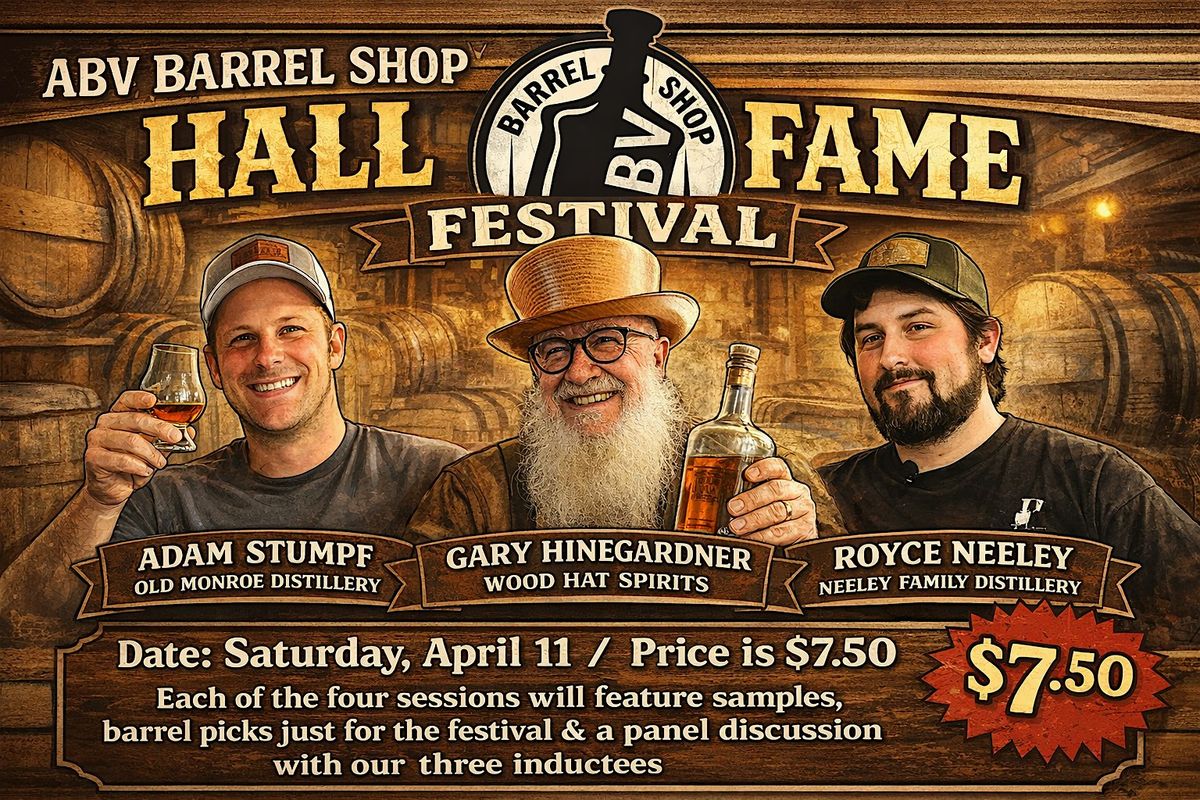 On April 11 we will be inducting three individuals into the ABV Barrel Shop's Single Barrel Hall of Fame. Ticket holders get to enjoy samples from the product lineups of all three distillers, we will have barrel picks for each of our inductees released at the festival and a panel discussion with them. Our schedule for each 90-minute session looks like this: